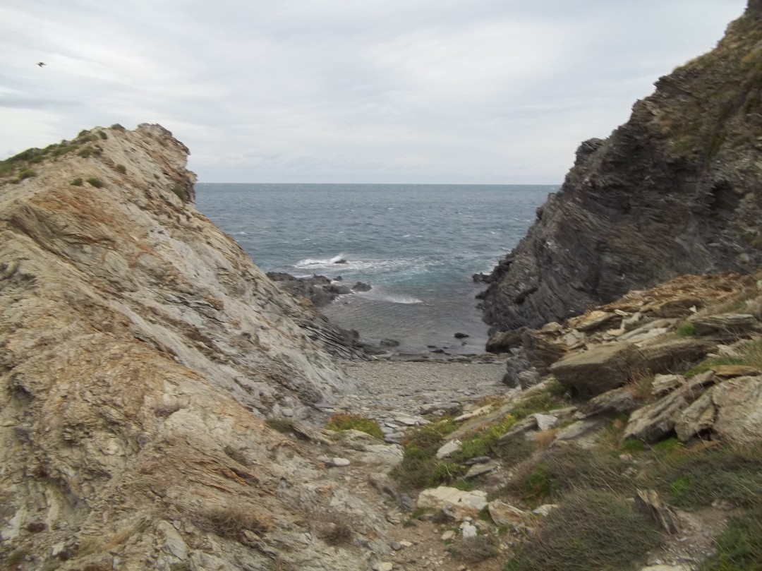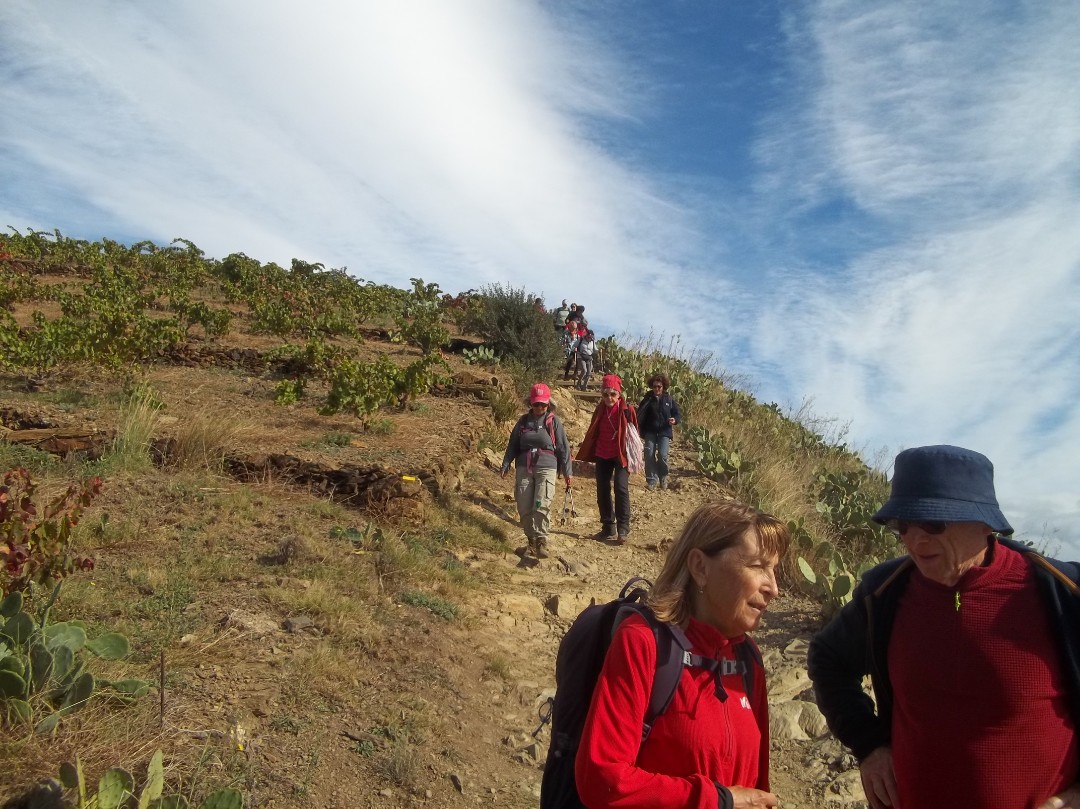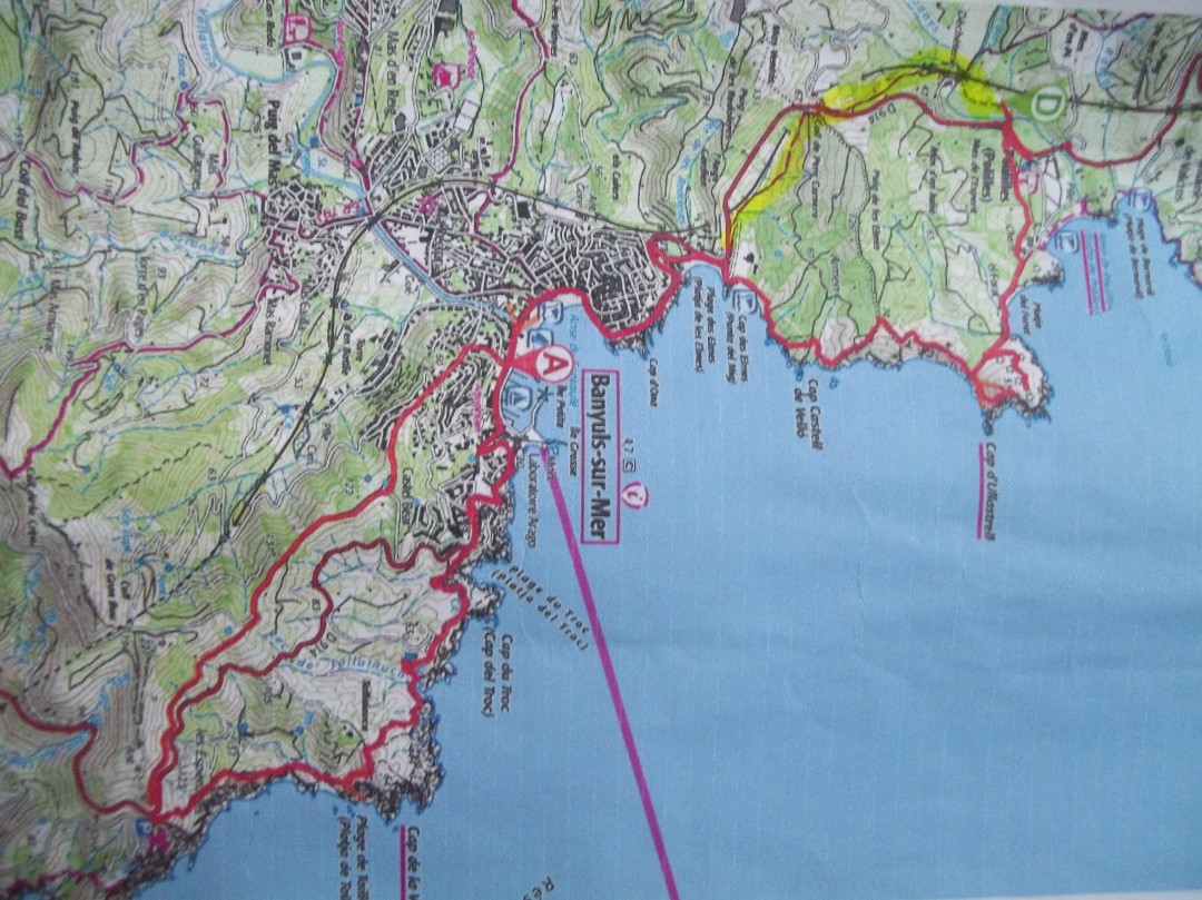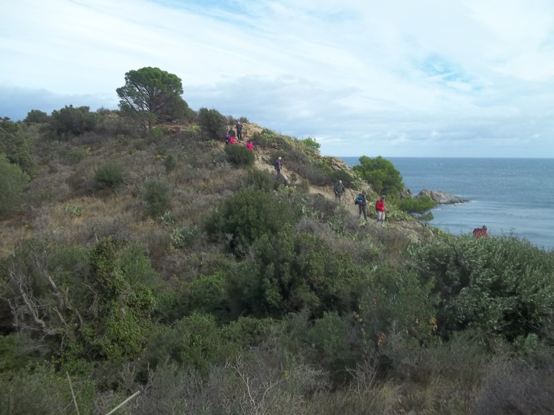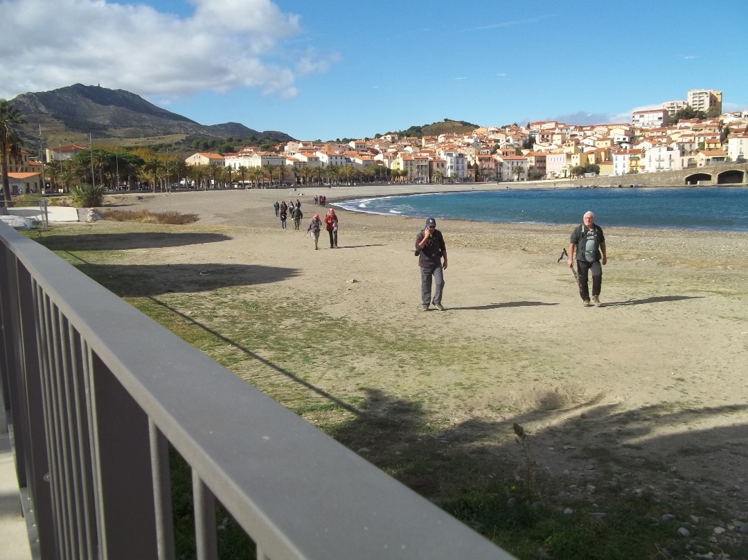 Poursuite sur le chemin du littoral pour atteindre le cap Castel de Vello qui permet d'avoir une vue sur la ville de Banyuls sur mer. Arrivée sur l'anse du Fontaulé au centre la ville pause repas sur le bord de la plage avec vue sur mer magnifique sous la surveillance d'un groupe de convives non invités qui n'ont pas manqué de réclamer des miettes. Après un bon partage de produits du terroir divers et variés le groupe a repris sa marche en avant en passant derrière le Laboratoire Arago pour rejoindre la route de Cerbère pendant quelques centaines de mètres avant de reprendre le sentier.